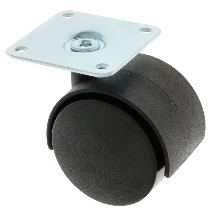 Rueda de nylón con pletina. Buen coeficiente de rozamiento. Uso en mobiliario.